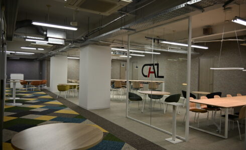 ガラスの間仕切りは解放感があって、オフィスを広く見せる効果があるたオススメです。