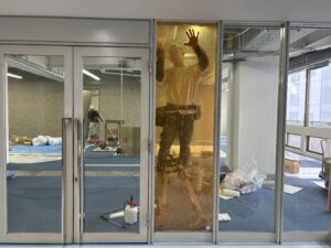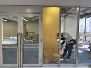 また、今回の工事はエレベーターホール側の入り口ガラスフィルムも施工させて頂きました。