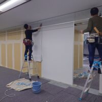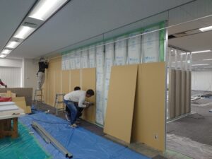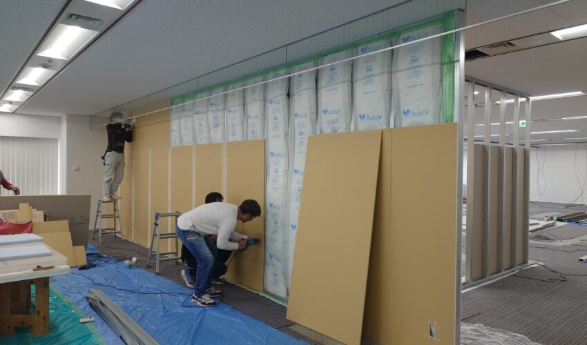 スタッドの間に入っている袋がグラスウールになります。 弊社では、細部にも気を遣って提案や工事をさせて頂きます。 事務所新設や移転、レイアウト変更をお考えの際はぜひ一度お声かけください。 CONTACT